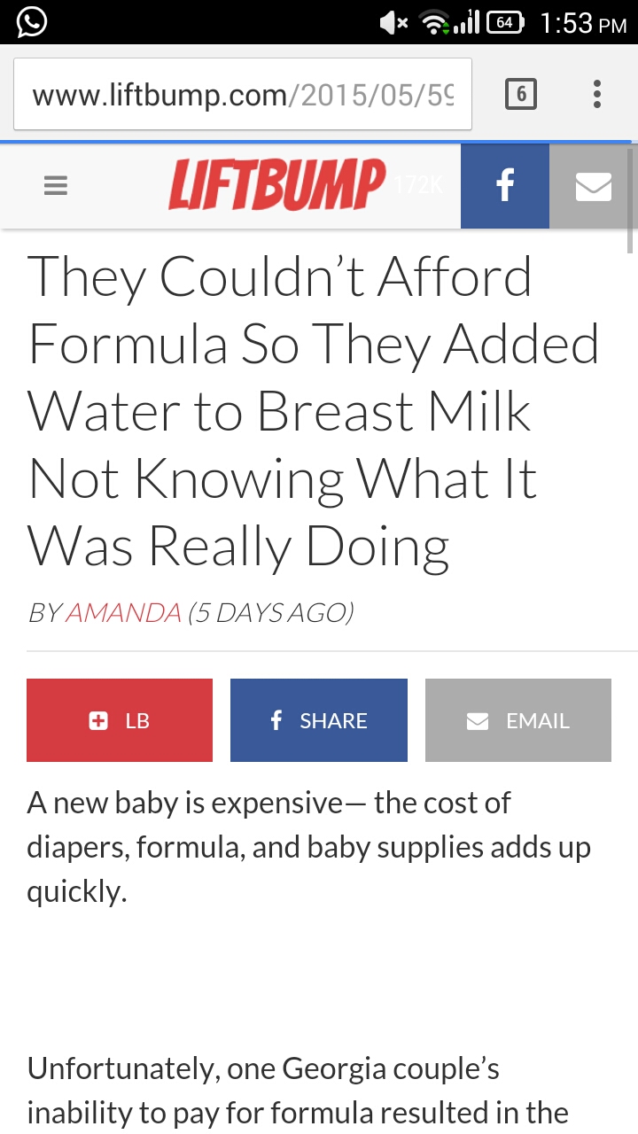 Iniah yg terjadi pada kes yg diviralkan ini. (Certa lanjut:http://www.liftbump.com/2015/05/59784-parents-fed-their-newborn-milk-mixed-with-water-now-theyre-on-trial-for-murder/